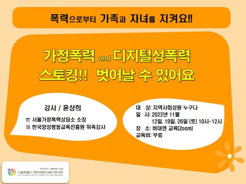 [모집] "가정폭력&디지털성폭력 벗어날 수 있어요" 기획강좌 신청안내
